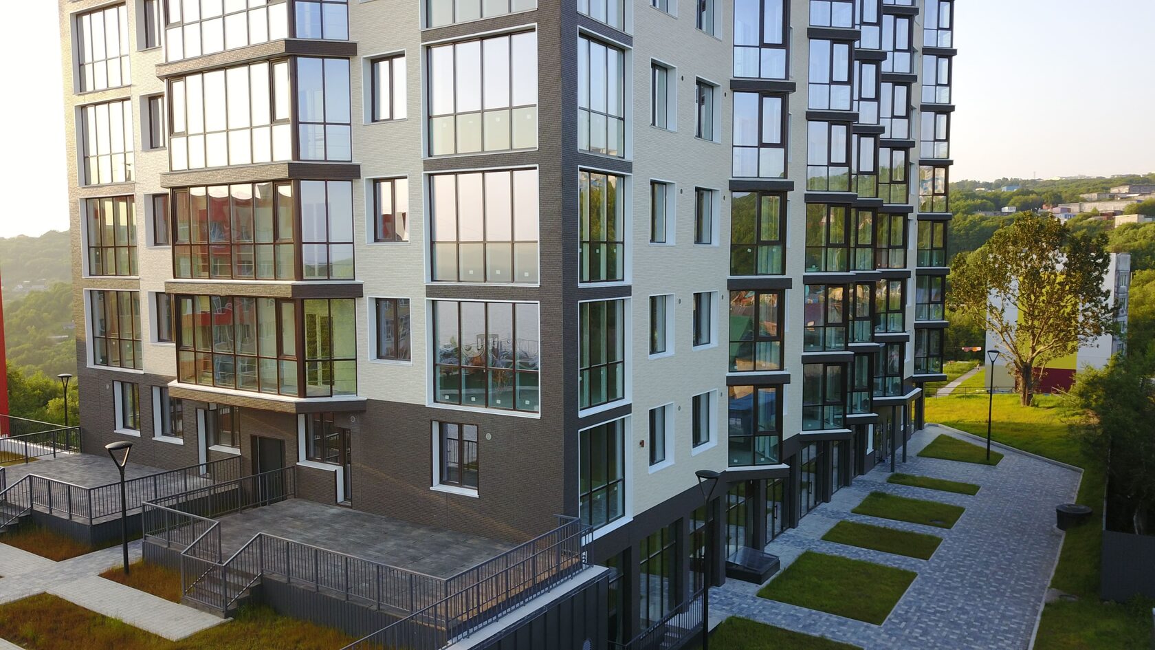 Регуляторы отопления на радиаторах, окна в пол. Аналогов комплекса нет.