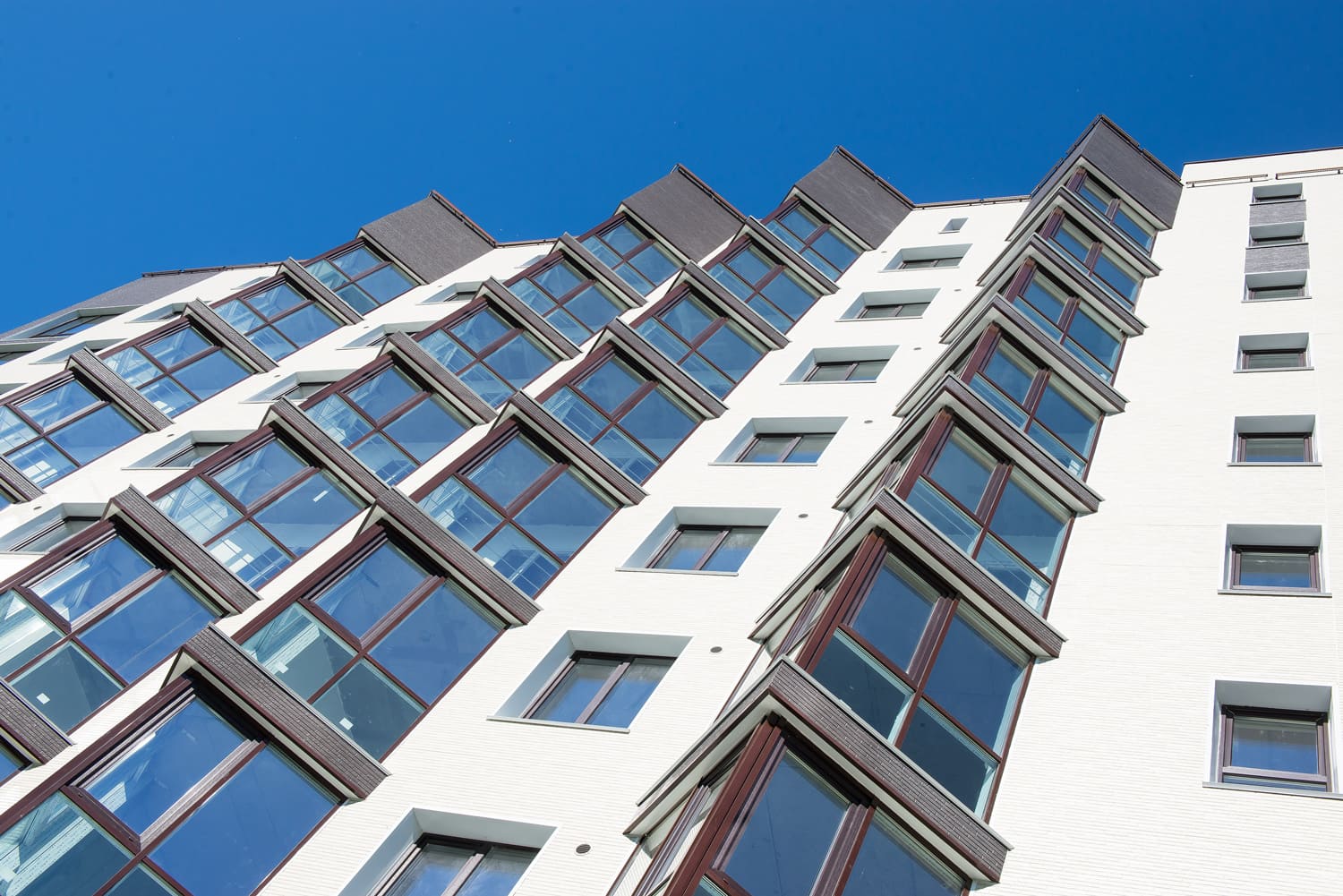Из тёмно-коричневых и красных фиброцементных панелей под кирпич