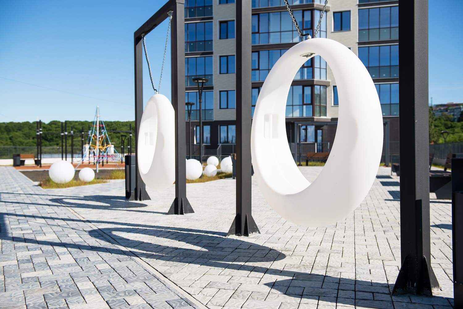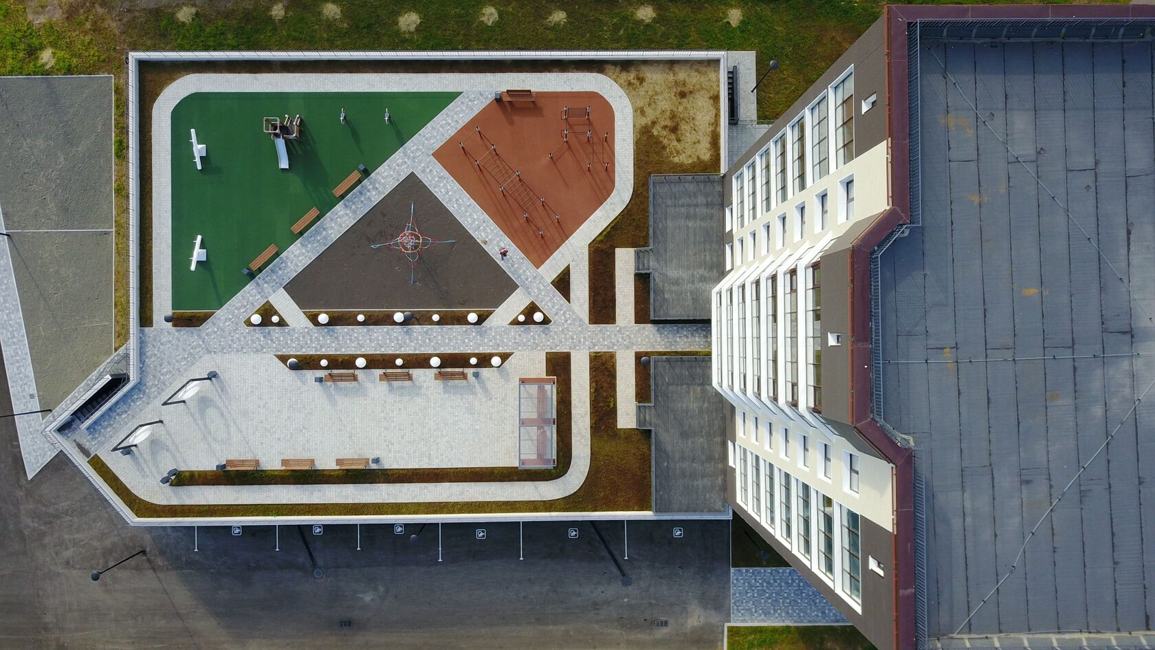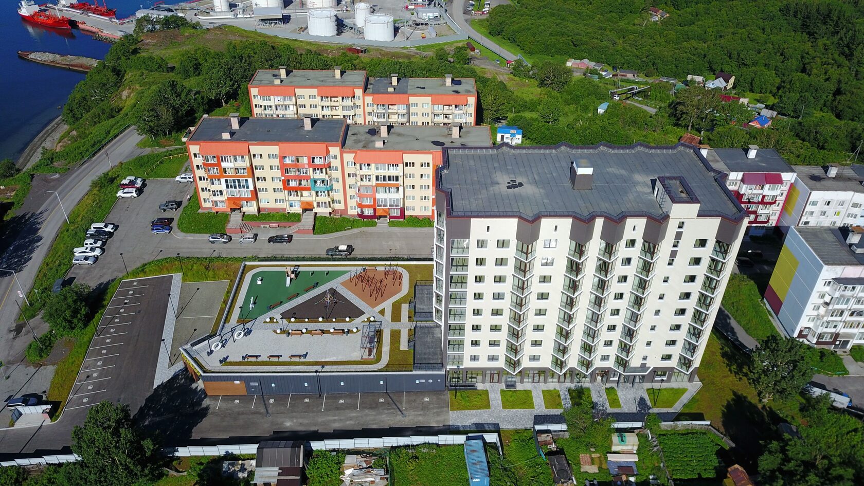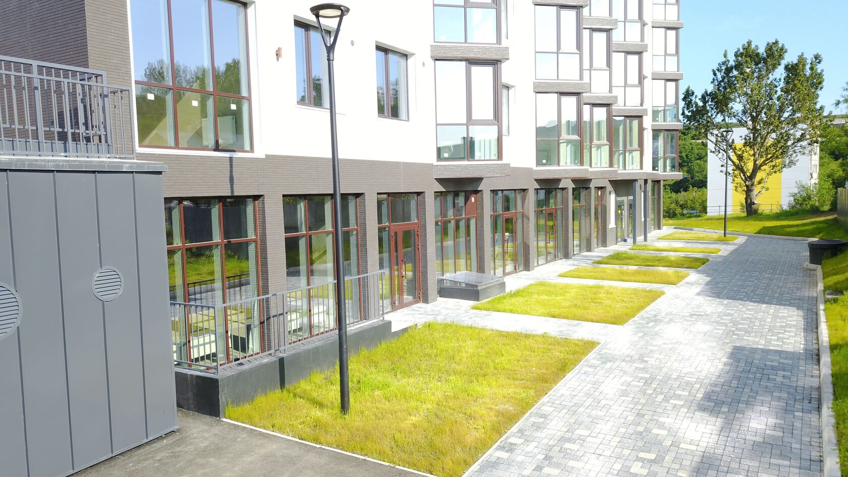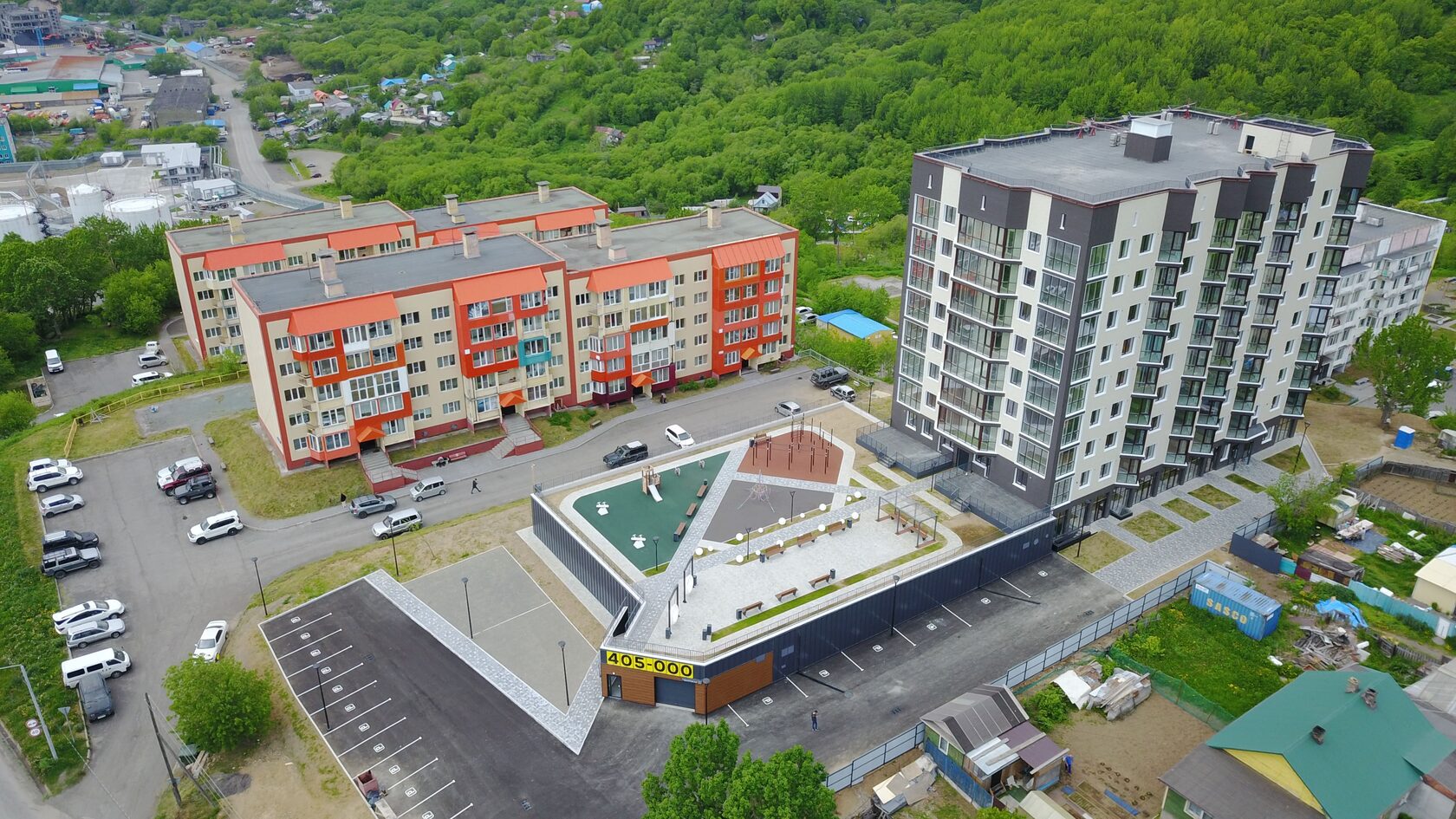 Благоустройство прилегающей территории включает в себя организацию детских игровых и спортивных площадок, гостевой автостоянки, а также озеленение. Предусмотрен закрытый паркинг. В шаговой доступности находятся детские сады, школа, магазины и остановки общественного транспорта.