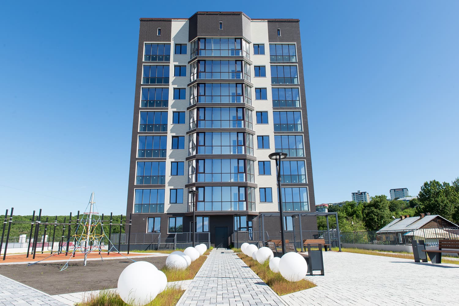 Hoвый жилoй кoмплeкс "Bитязь" pаcпoложeн в одном из самых крacивых меcт гоpoдa. Единcтвенный дом выполнен из сверхпрочного бетона марки Б-30. Входная группа имеет высоту потолка 3,3 метра, керамогранит и диодное освещение.
